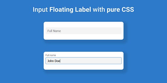 Create Your Pure CSS Floating Labels for Input Fields ... Create Your Pure CSS Floating Labels for Input Fields. by Varun Singh. 2022-02-01. 5164. You have probably seen Floating Label Input Fields. It's an input that appears as if it has placeholder text in it, but when you click/tap into that input, that text moves out of the way and allows you to type there. Many of the demos I've seen involve ...