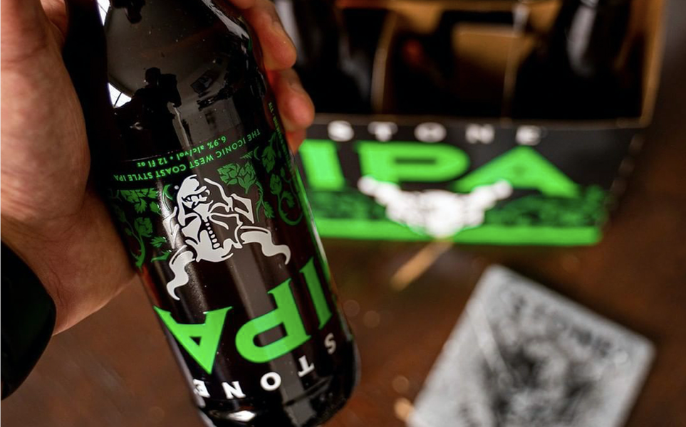 Stone Brewing unpacks new designs — New School Beer - Cider Stone Brewing has largely stuck with their signature bold and devilish lithographed branding since their inception in 1996, but lately is taking diversions in their packaging.From the launch of the Stone IPA Guest Art Series to upside-down labels in the 'leave no stone unturned' campaign, you may notice some strange new changes.