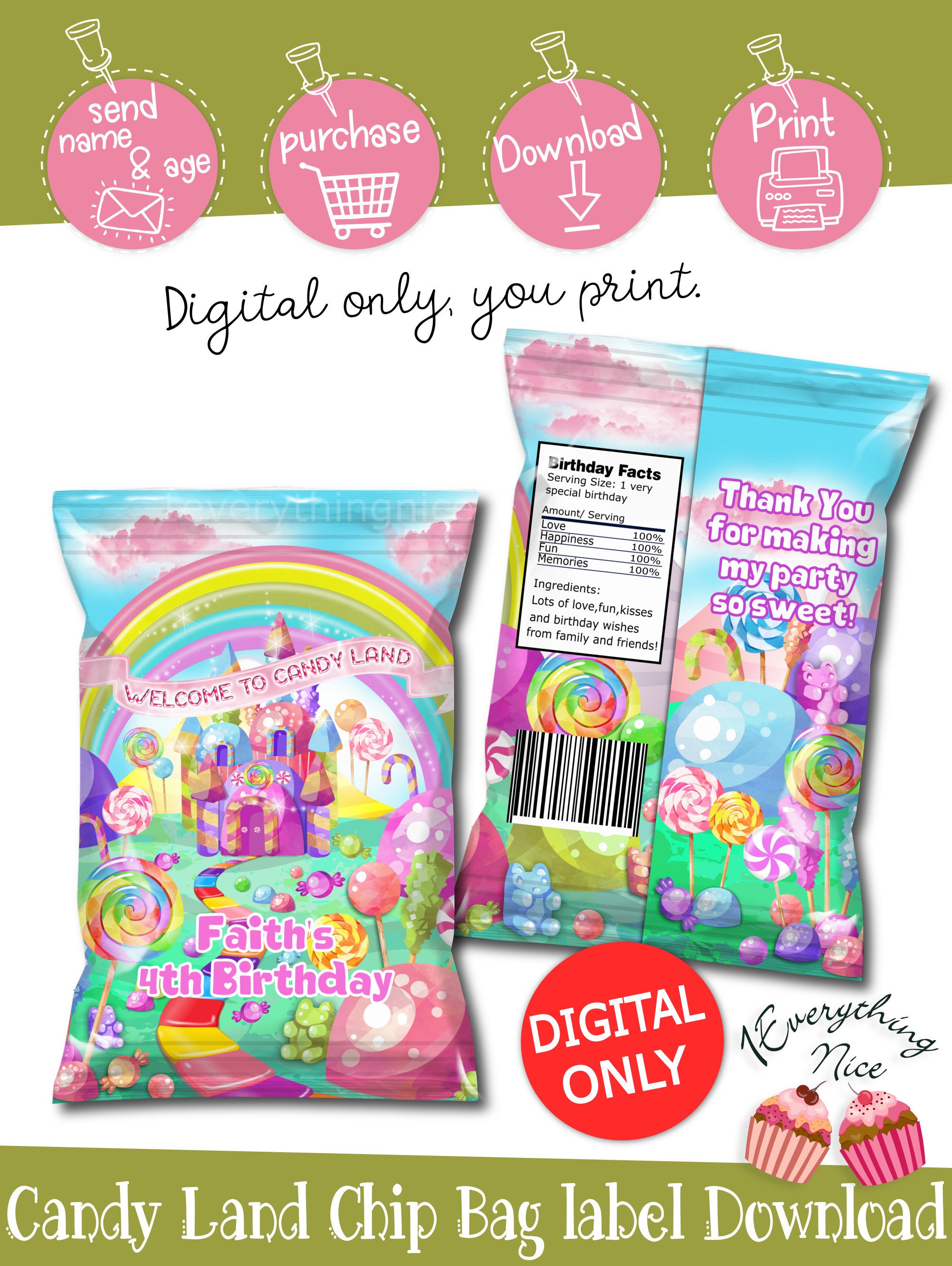 Free printable candyland labels. Free Printable Candy Buffet Labels Template | Candy buffet labels ... (1 of 3) This Dum-Dum topiary was easy to make, everything came from Standard 5&10 Ace in SF or Marin Ace Hardware. We took a wooden dowel that we had wrapped with white tape, attached a 5" styrofoam ball with Elmer's Glue, cemented it into a ceramic pot, and then after inserting about 200 DumDums, we wrapped a white LED light string around the dowel and ball. › pin › free-printable-potato-chipFREE PRINTABLE POTATO CHIP BAG TEMPLATE - Pinterest Jun 13, 2022 - FREE PRINTABLE POTATO CHIP BAG TEMPLATE - Yahoo Image Search Results | Candy bar wrapper ... Candyland Labels | Etsy Candyland Water Bottle Labels, INSTANT DOWNLOAD, Sweets Party Labels, Candy Water Bottle Wrappers, Candyland Label, Sweets Party Decorations LythiumArt (1,959) $3.60 $4.00 (10% off) DIGITAL DOWNLOAD Candy Land Birthday Party Capri Sun Labels Caprisun Juice Pouch Digital Printable 1EverythingNice (2,176) $5.00 Candy land birthday with free printables - Pinterest Apr 24, 2016 - Explore Yasemin Sari's board "Candy land birthday with free printables", followed by 131 people on Pinterest. See more ideas about candy party, candyland birthday, candyland party.