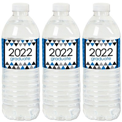 Graduation Class of 2022 Water Bottle Labels - Blue and White School Colors - 24 Stickers - Distinctivs