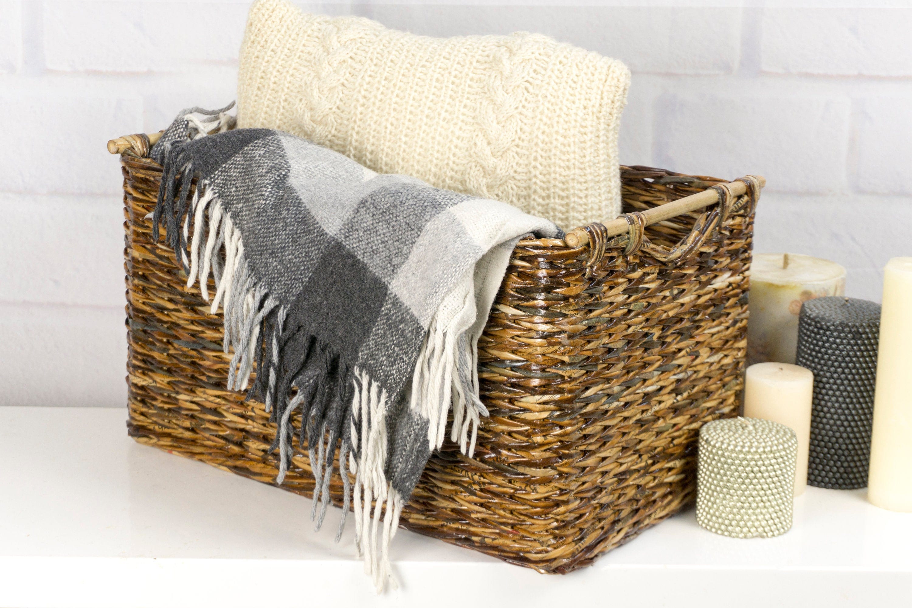 VK Living Foldable Handwoven Water Hyacinth Storage Baskets Wicker Cube Baskets Rectangular Laundry Organizer Totes for Bedroom, Living Room,Nursery ...