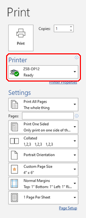 Printing from MS Word - Zebra Technologies From the Layout tab, click Margins and select Custom Margins. Set the Top, Bottom, Left, and Right margins to 0. Click OK. Now, the page is ready to print: Once the design is ready click File, click Print, and then select the ZDesigner driver. If all details are correct, click Print: This will be the result after printing: Helpful Information: